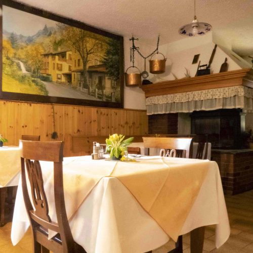 L'atmosfera calda e famigliare accoglie subito chi entra nel locale. Le due sale, di dimensioni contenute, rendono tutto ancora più rustico e casareccio. Nella sala principale si erge un grande caminetto che nelle stagioni fredde scalda maestoso l'intera sala.